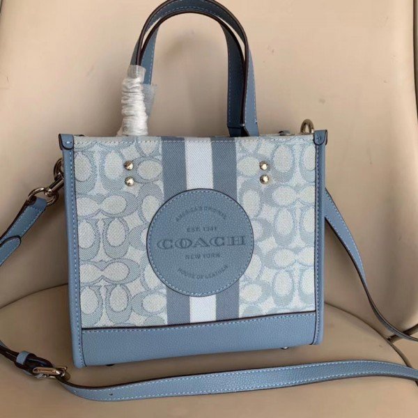 Coach Dempsey Tote 22 in Signature Jacquard With Stripe and Coach Patch With OG Box & Dust Bag (Pink – 5638)*๐๐ฏ