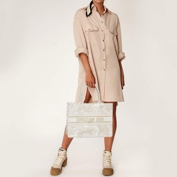 Dior Book Tote Cream Toile De Jouy With OG Box & Dust Bag & Scarf (Cream Tiger-842) (BSB)