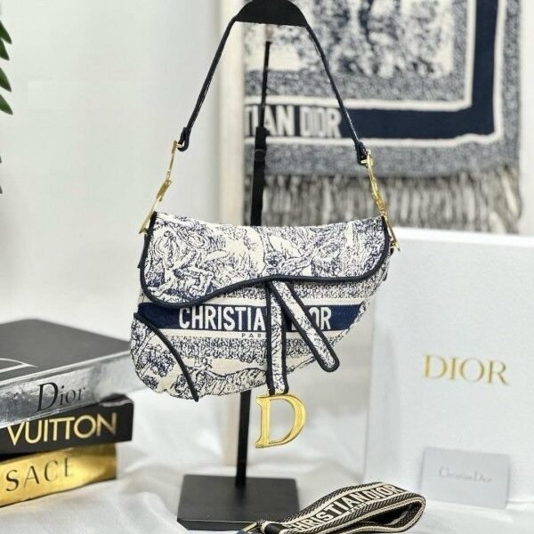 Dior Saddle Blue Toile de Jouy Embroidery With OG Box & Dust Bag (Blue Tiger-1035) (BSB)