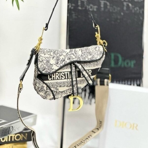 Dior Saddle Black Toile de Jouy Embroidery With OG Box & Dust Bag (Black Tiger-129) (BSB)