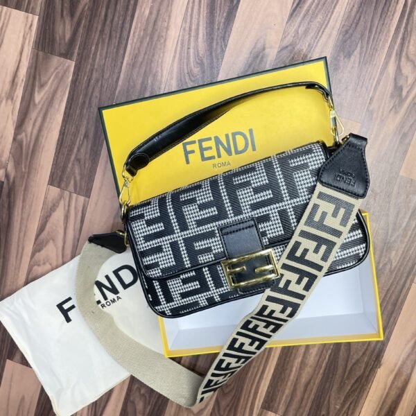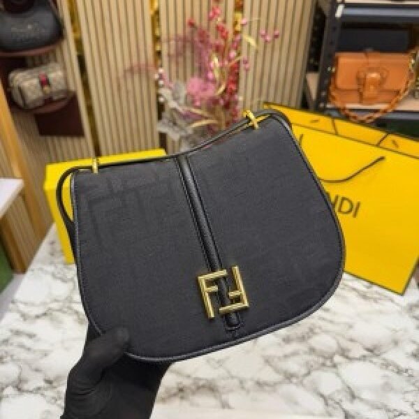 FEND I COMON FF LOGO PLAQUE HANDBAG WITH OG BOX AND DUST BAG INCLUDING CARRY BAG PREMIUM QUALITY (BLACK)(MT)