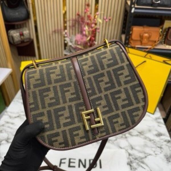 FEND I COMON FF LOGO PLAQUE HANDBAG WITH OG BOX AND DUST BAG INCLUDING CARRY BAG PREMIUM QUALITY (COFFEE)(MT)