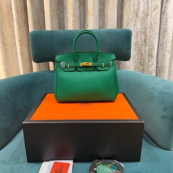 Hermes Malachite Green Togo Leather Rose Gold Hardware Birkin Bag With Dust Bag & OG Box (BK25 Malachite Green)