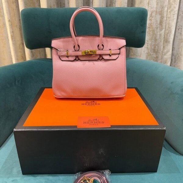Hermes Powder Pink Togo Leather Rose Gold Hardware Birkin Bag With Dust Bag & OG Box (BK25 Powder Pink)