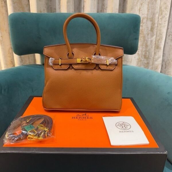 Hermes Brown Togo Leather Rose Gold Hardware Birkin Bag With Dust Bag & OG Box (BK25 Brown)