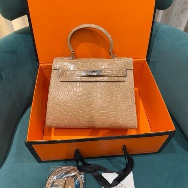 Hermes Blanc Crocodile Niloticus Khakhi Encrusted Birkin Bag With OG Box & Dust Bag (1080 Khakhi)