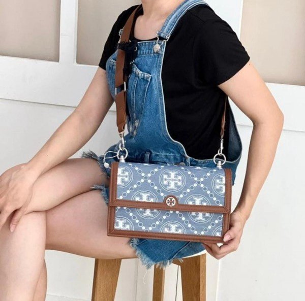 Tory Burch T Monogram Shoulder Bag With Adjustable Strap With OG Box & Dust Bag (Brown – 617)(BSB)