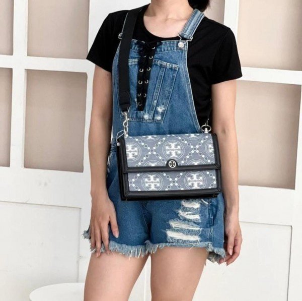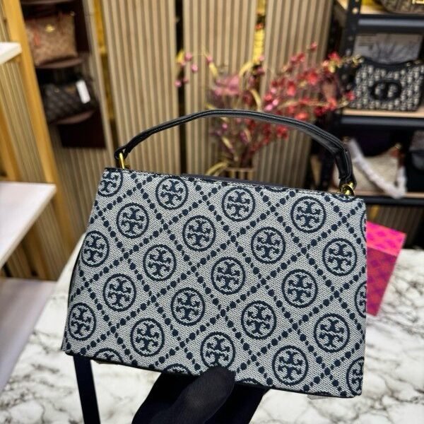 Tory Burch T Monogram Shoulder Bag With Adjustable Strap With OG Box & Dust Bag (Black – 616)(BSB)