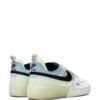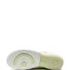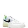 The Nike Air Force 1 React “Sail Barely Volt” sneakers feature a tried-and-proven mix of materials. This model is crafted from white leather and comes with semi-transparent nylon on the sneaker’s top half – that stands out thanks to its combination of green and blue hues. A black Swoosh logo on the sides completes the look.