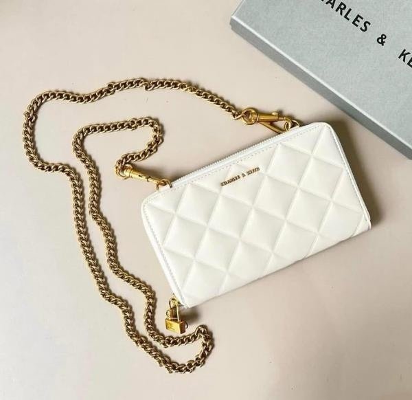 Charles & Keith CK Chain On Wallet With OG Box & Dust Bag (White – 860)