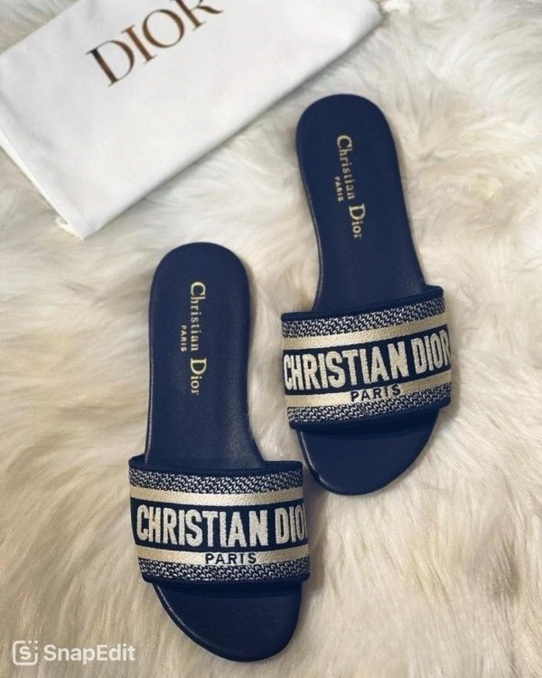 Christian Dior Black Dway Slide With OG Box & Carry Bag (Navy 746)