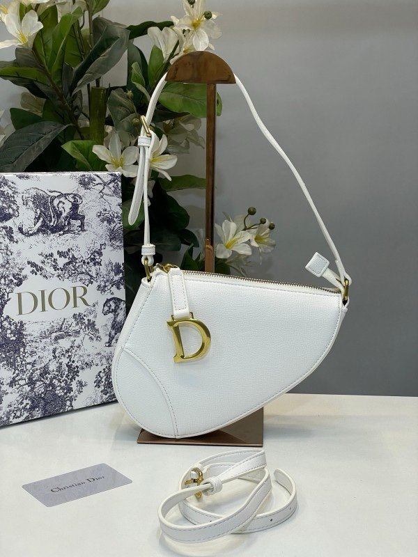 Christian Dior CD Saddle Rodeo Bag Pouch With OG Box & Dust Bag (379 White)