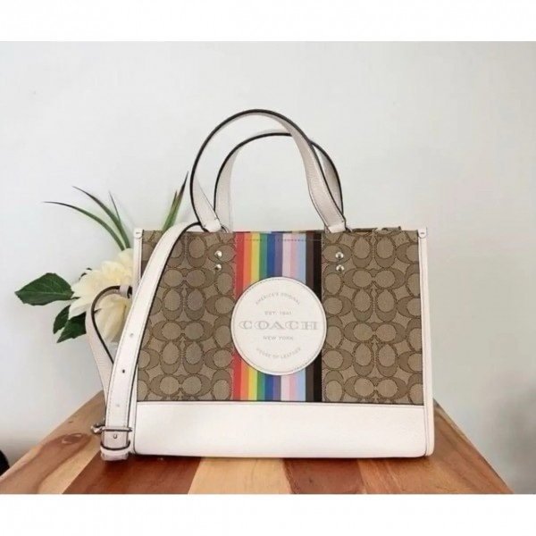 Coach Dempsey Tote With OG Box & Dust Bag & Extra Shoulder Strap (Rainbow-718)(BSB)
