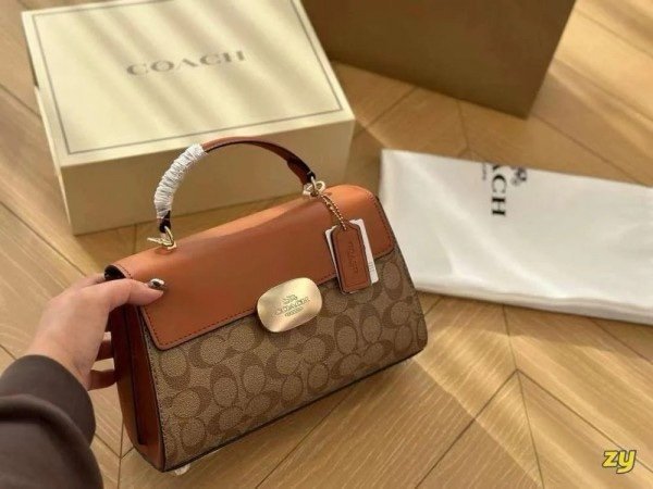 Coach Eliza Top Handle Premium Crossbody Bag With OG Magnetic Gift Box & Dust Bag (Tan_Brown-912)(BSB)