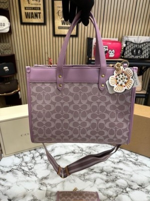 COACH LUXURY TOTE WITH ORIGINAL BOX AND DUST BAG PREMIUM QUALITY & DOUBLE BOX [ PURPLE]