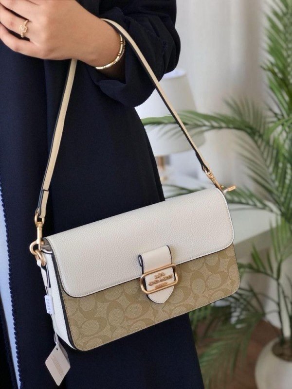 Coach Morgan 27 Shoulder Bag With OG Box & Dust Bag (5710_Apricot_whiteBeige)(LB)