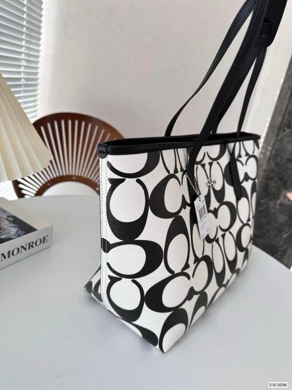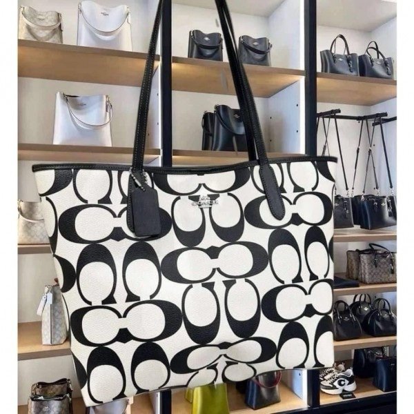 Coach Signature City Limited Edition Premium Tote Bag With OG Magnetic Box & Dust Bag (Black_White-874)(BSB)