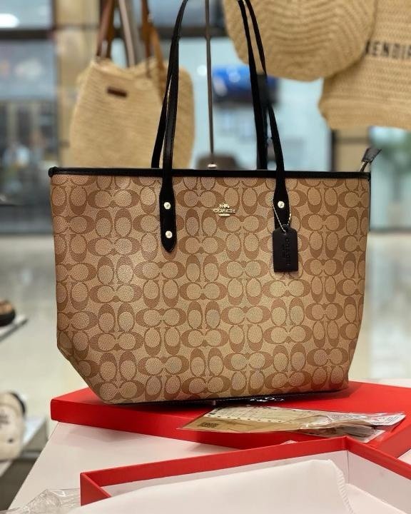 Coach Signature City Tote Bag With OG Box & Dust Bag (Beige_Black-1119)(BSB)