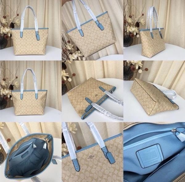 Coach Signature City Tote Bag With OG Box & Dust Bag (Beige_Blue-1118)(BSB)