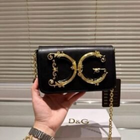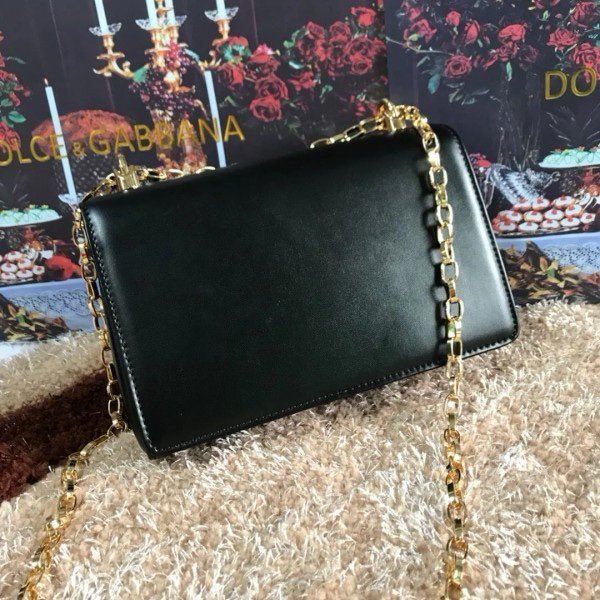 Dolce & Gabbana D&G Napp Leather Shoulder Bag WIth OG Box & Dust Bag (Black-988)(BSB)