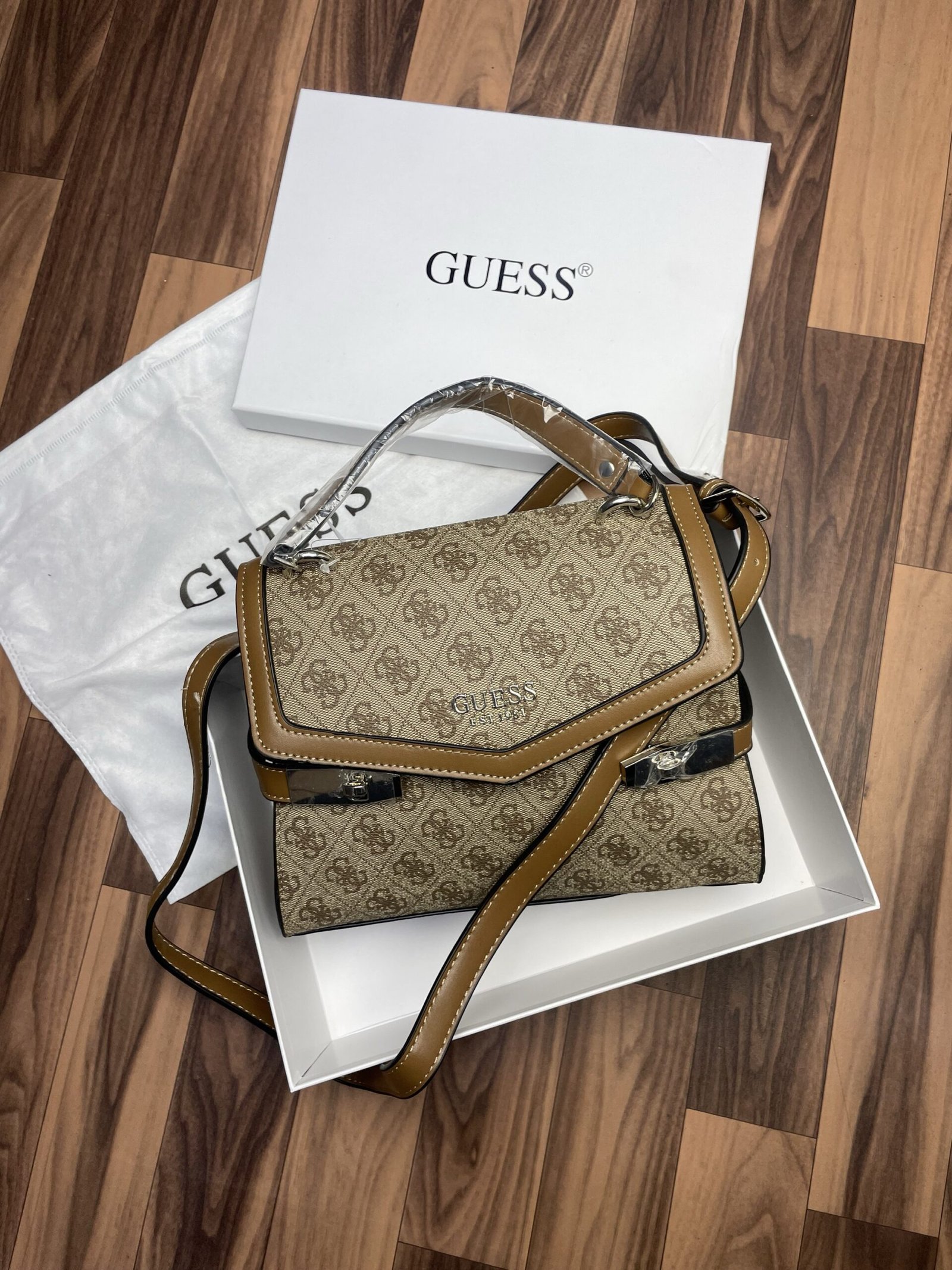 GUESS Zadie Logo Top Handle Flap Bag Powder Logo With Og box 303(BR)