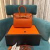 Hermes Orange Togo Leather Rose Gold Hardware Birkin Bag With Dust Bag & OG Box (BK25 Orange)(LB)
