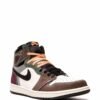 A celebration of Michael Jordan’s legacy, the Air Jordan 1 sneakers remain a sportswear hallmark. This iteration is presented in a brown, white, grey and black colourway and finished with an iconic Swoosh logo to the side.
