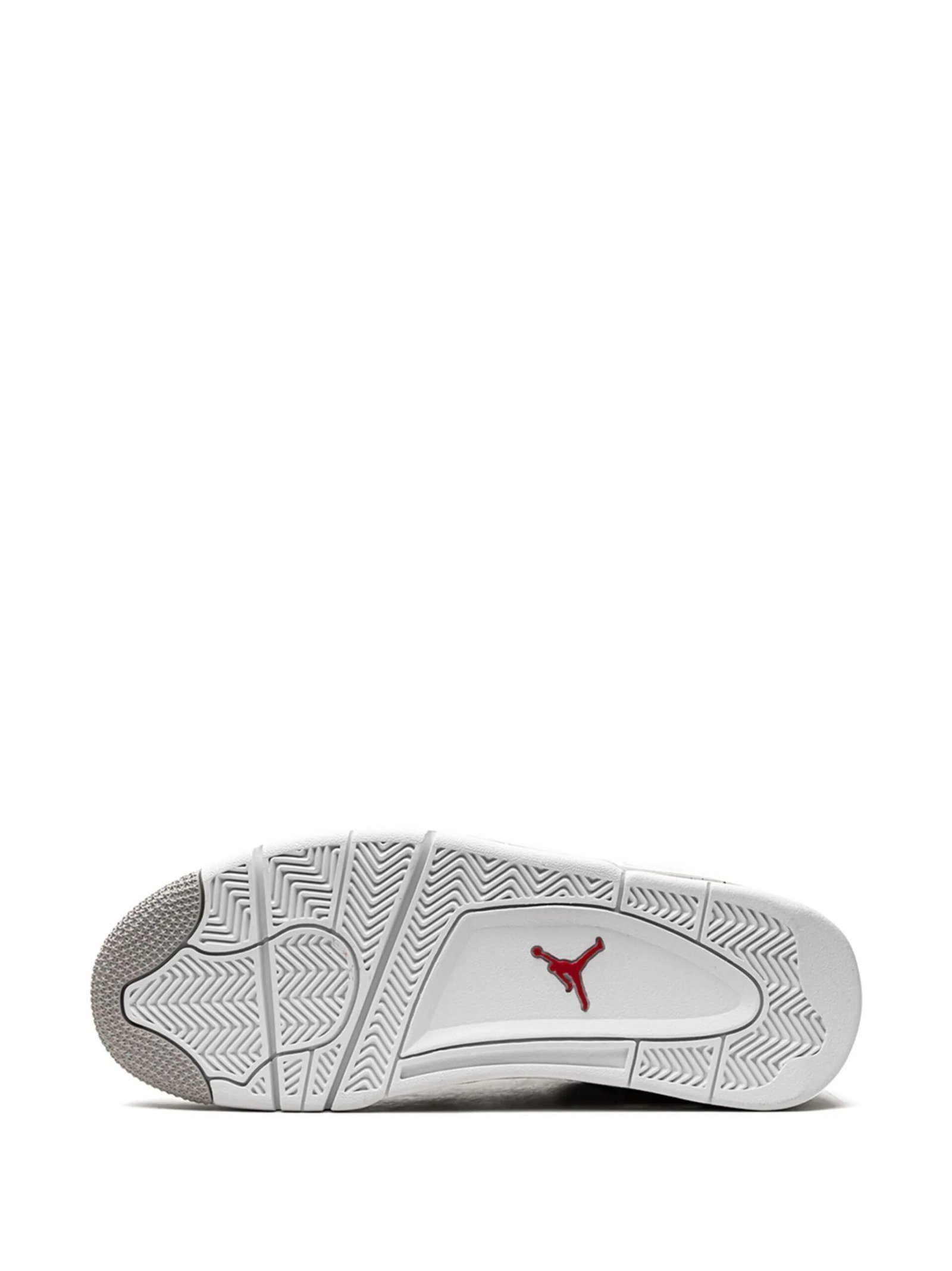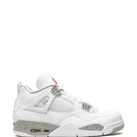 Combining the silhouette’s “Oreo” and “White/Cement” colourways, the Air Jordan 4 Retro “White Oreo” sneakers boast a monochrome design. Speckled grey detailing appears alongside the pair’s white “wings” whilst the Jumpman motif stands out in a bold Fire Red.