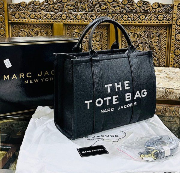 Marc Jacobs Medium The Tote Bag With OG Box & Dust Bag & Shoulder Strap (Black – 459)