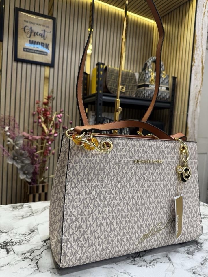 MICHAE L KORS CYNTHIA HANDBAG WITH OG DUST BAG PREMIUM QUALITY (BIEGEBROWN)(MT)