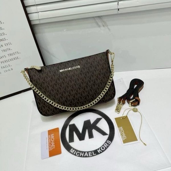 Michael Kors Jet Set Chain Pouchette Bag With OG Box & Dust Bag (Coffee Brown 22318)