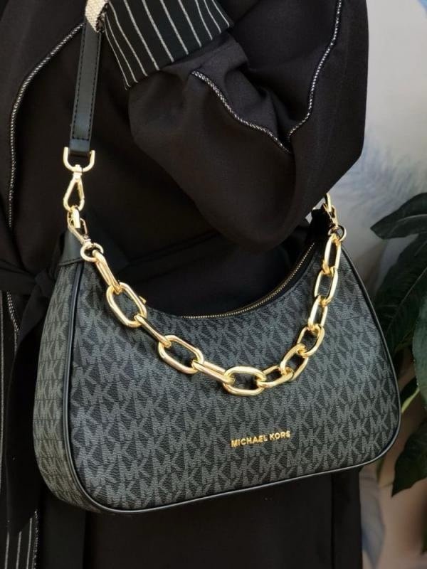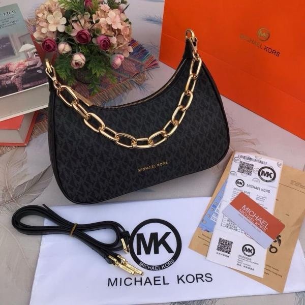 Michael-Michael-Kors Cora Medium Signature PVC Zip Pouchette Crossbody Bag Brown with box 376(BR)