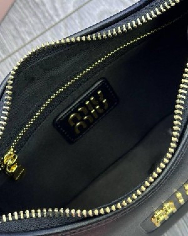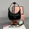 Miu Miu Leather Hobo armpit Bag With OG Box & Dust Bag (359 Black)(LB)