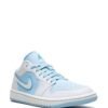 This version of the Air Jordan 1 Low is rendered in an “Ice Blue” colourway. It’s crafted from smooth leather and enhanced with signature branding: note the Jumpman logo on the tongue and the Wings insignia on the lower heel. A two-tone rubber sole completes the design.