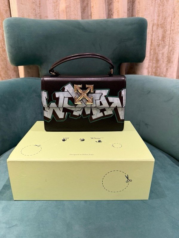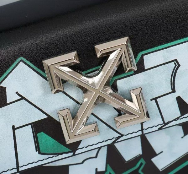 Off-White Leather Hand Held Black Graffity Jitney 1.4 Shoulder Bag (8853 Black Graffity)(LB)