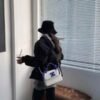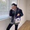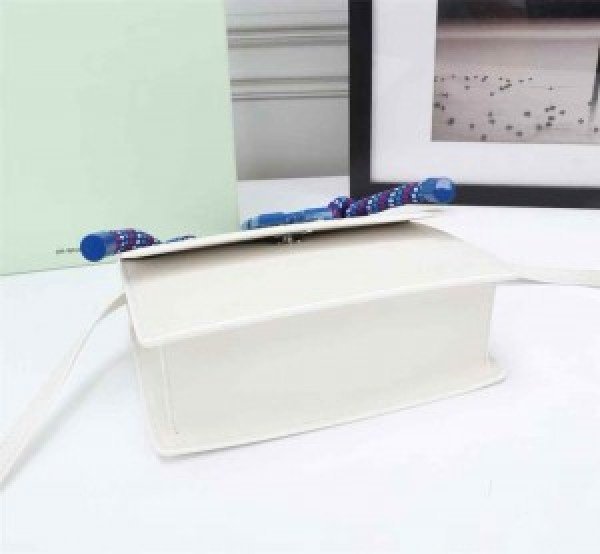 Off-White Leather Insert Gummy white with Metallic Blue Arrows At Front. Rope Handle Jitney 1.4 Shoulder Bag (D88532 White)(LB)