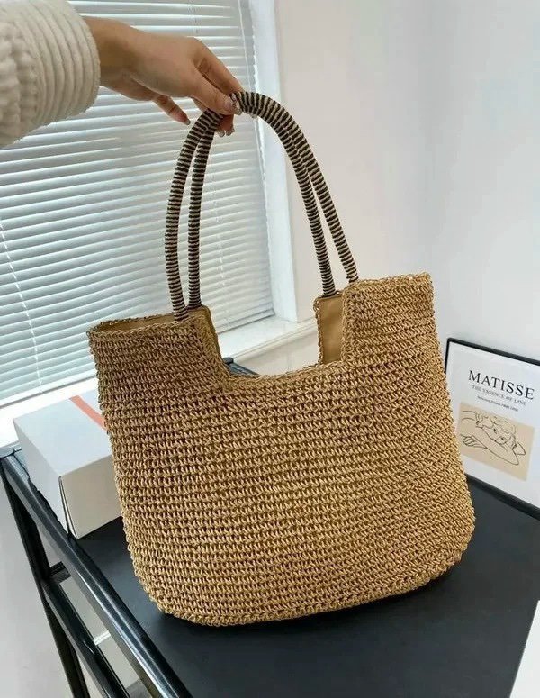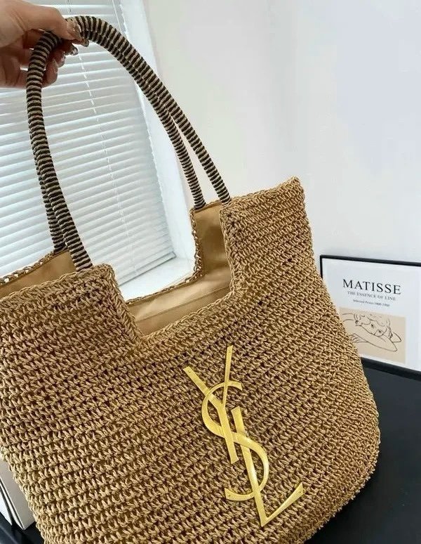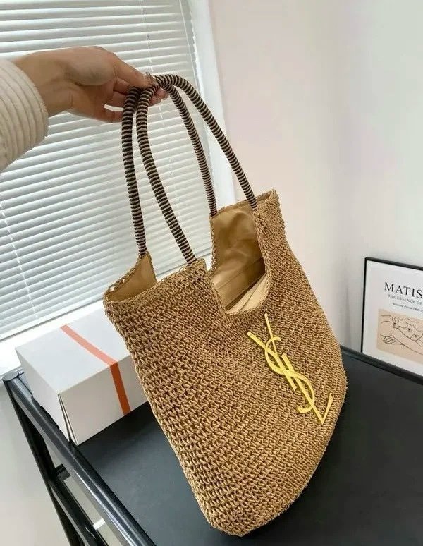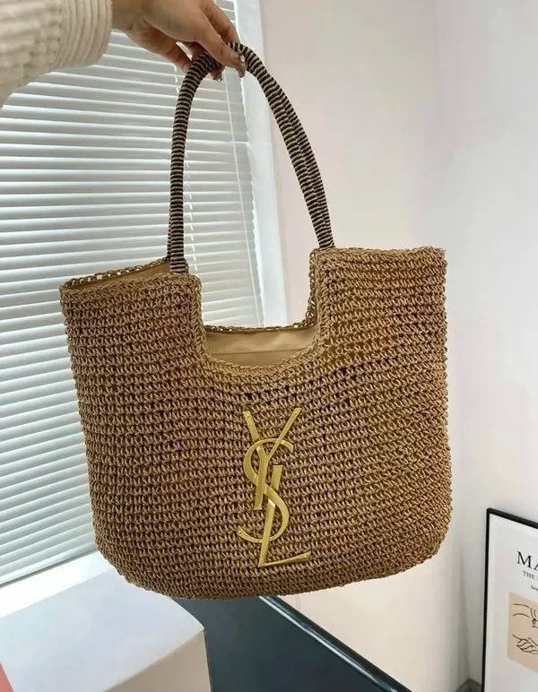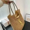 YSL Saint Laurent ICare Raffia Jute Tote Bag With OG Box & Dust Bag (Brown – 991)(BSB)